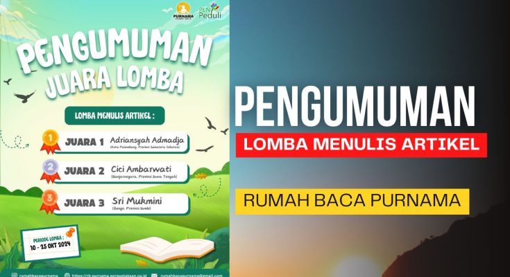 Melansir dari akun instagram Rumah Baca Purnama pada Kamis (31/10/2024), malam tadi Rumah Baca Purnama mengumumkan hasil Lomba Menulis Artikel.