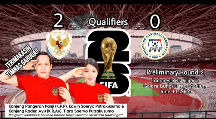 Dari wawancara Tim Redaksi Kanjeng Pangeran Panji (K.P.P). Edwin Soeryo Putrakusumo dan Kanjeng Raden Ayu (K.R.Ay). Tiara Soeryo Putrakusumo, terkait Matchday terakhir Grup F Kualifikasi Piala Dunia 2026 Zona Asia putaran kedua menyajikan Indonesia vs Filipina.