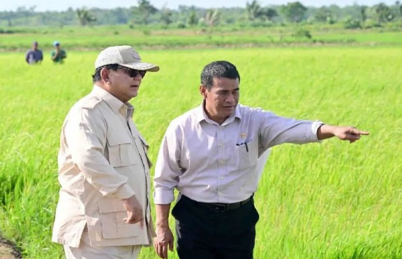 Presiden RI Prabowo Subianto didampingi Menteri Pertanian Andi Amran Sulaiman menggelar kunjungan kerja perdananya di Kabupaten Merauke, Papua Selatan, Minggu.