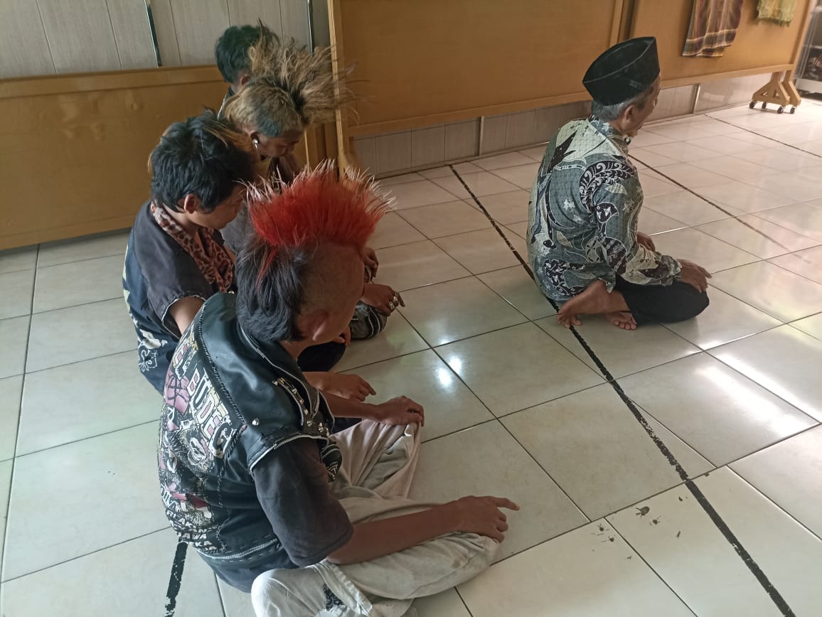 Ustadz Imam Khambali bersama anak-anak Punk saat menjalankan sholat dzuhur berjamaah