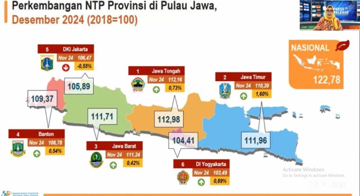 “Kita lihat bagaimana gambaran NTP di lima provinsi di Pulau Jawa. (NTP) Tertinggi memang masih dicapai oleh Jawa Tengah dengan 112,98,” paparnya saat rilis melalui daring, Kamis (2/1/2025).