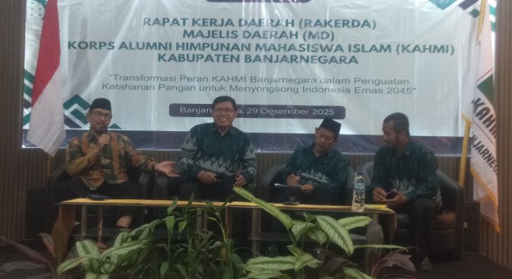 BANJARNEGARA, KABAR-DESAKU.COM – Menyambut pergantian tahun, Majelis Daerah (MD) Korps Alumni Himpunan Mahasiswa Islam (KAHMI) Kabupaten Banjarnegara menggelar Rapat Kerja Daerah (Rakerda) yang diikuti oleh seluruh pengurus dan anggota KAHMI Banjarnegara. Kegiatan ini dilaksanakan di Kencana Room Hotel Surya Yudha Banjarnegara, pada Senin sore, 29 Desember 2025.